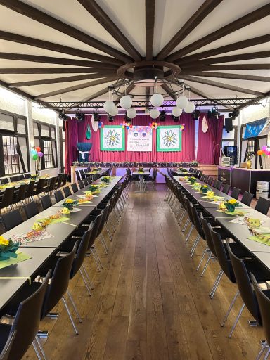 In unserem großen Saal mit Bühne 112 Sitzplätzen erweiterbar auf 156 Sitzplätze oder Reihenbestulung bis zu 264 Sitzplätze.